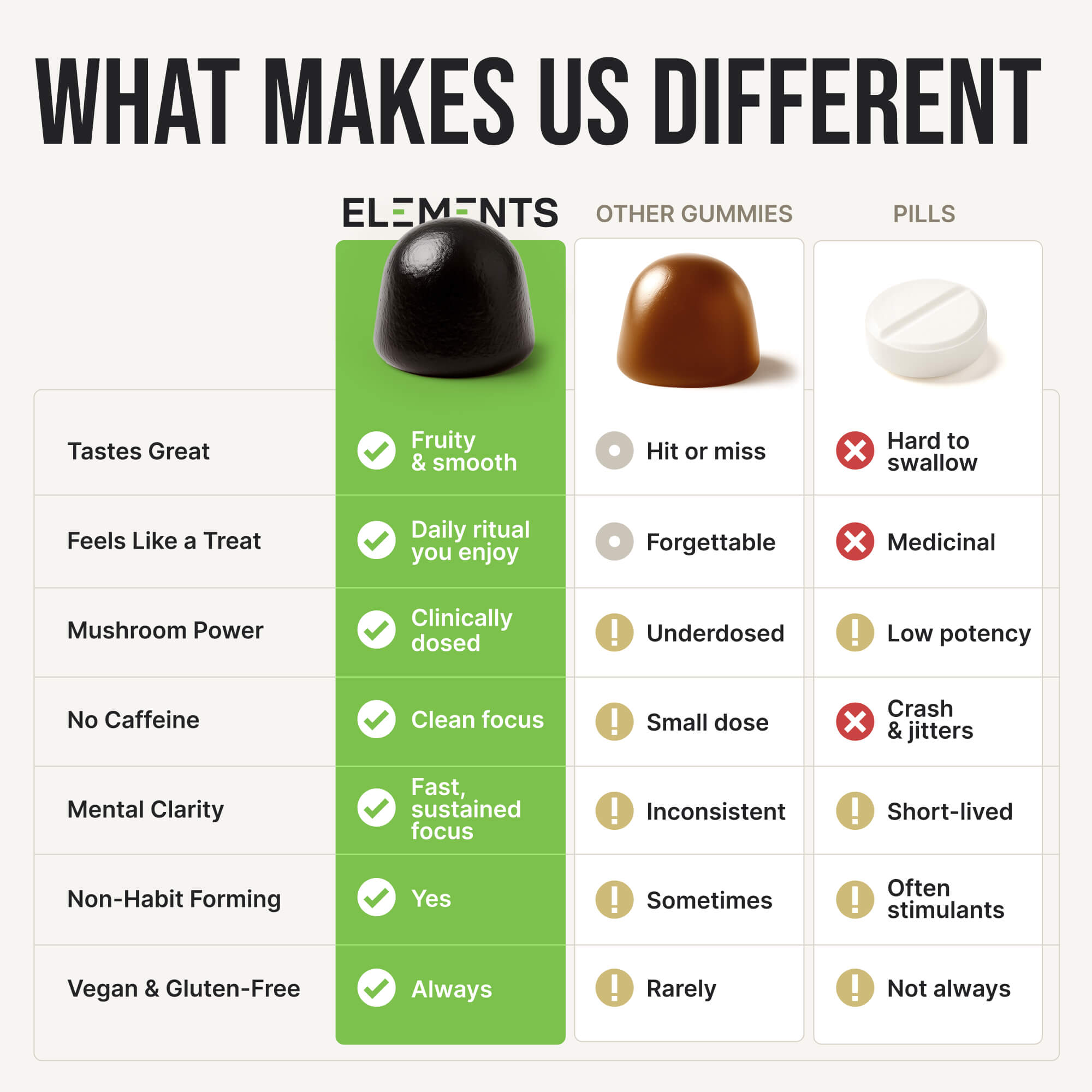 Each gummy is pre-dosed with functional mushrooms, vitamins, and amino acids.