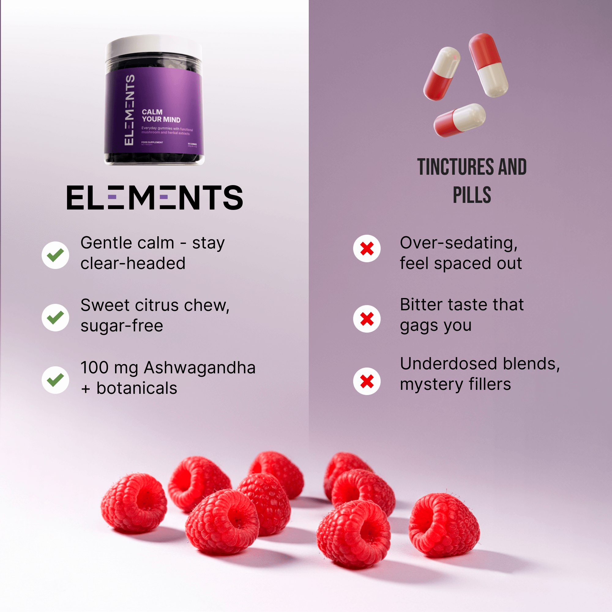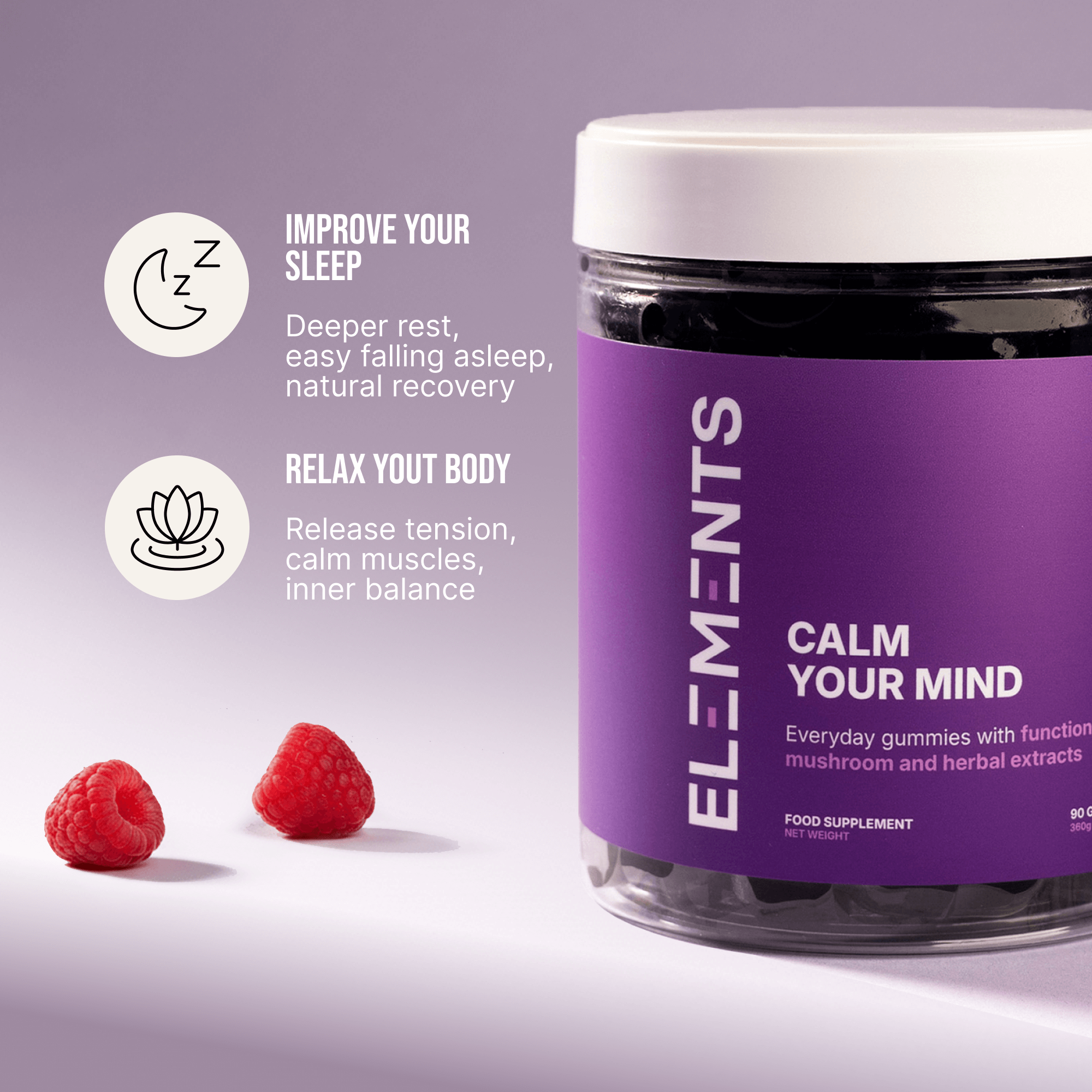 Each gummy is pre-dosed with Ashwagandha, calming botanicals and B vitamins. Real, noticeable support for stress, relaxation and mood.