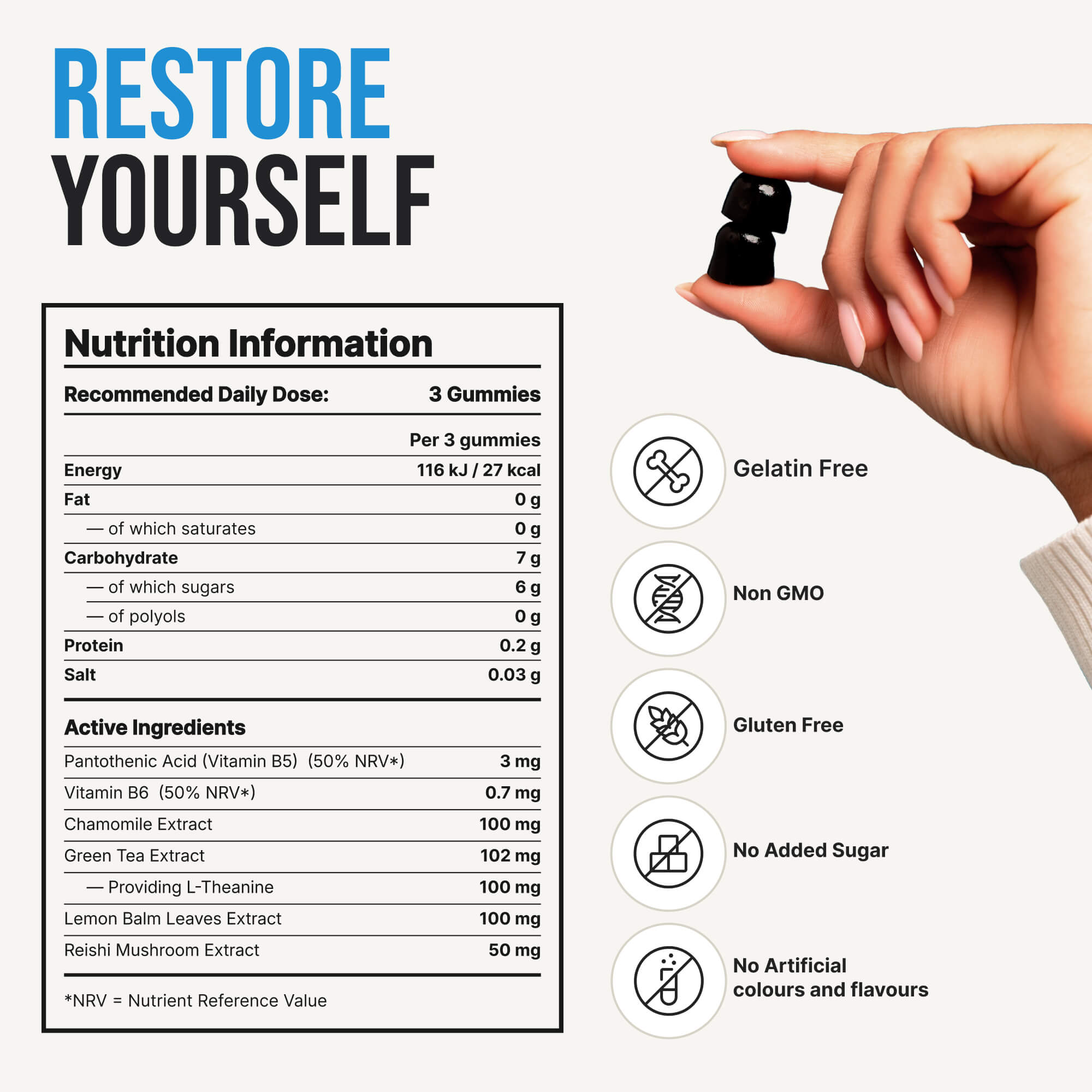 - Reishi, Chamomile & Lemon Balm – support relaxation and deep, restorative sleep.