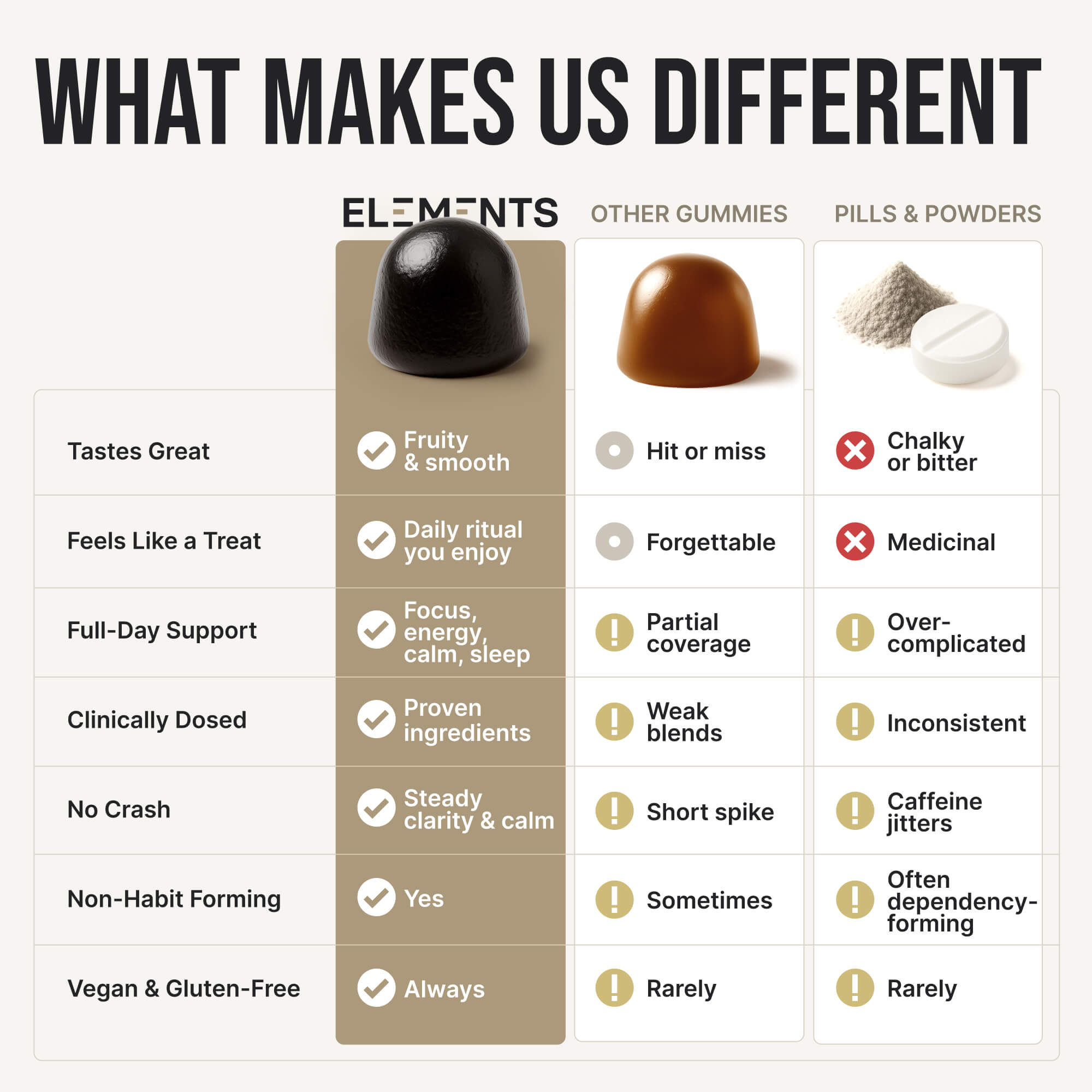 Each gummy is pre-dosed with proven ingredients. Real, noticeable support for every part of your day.